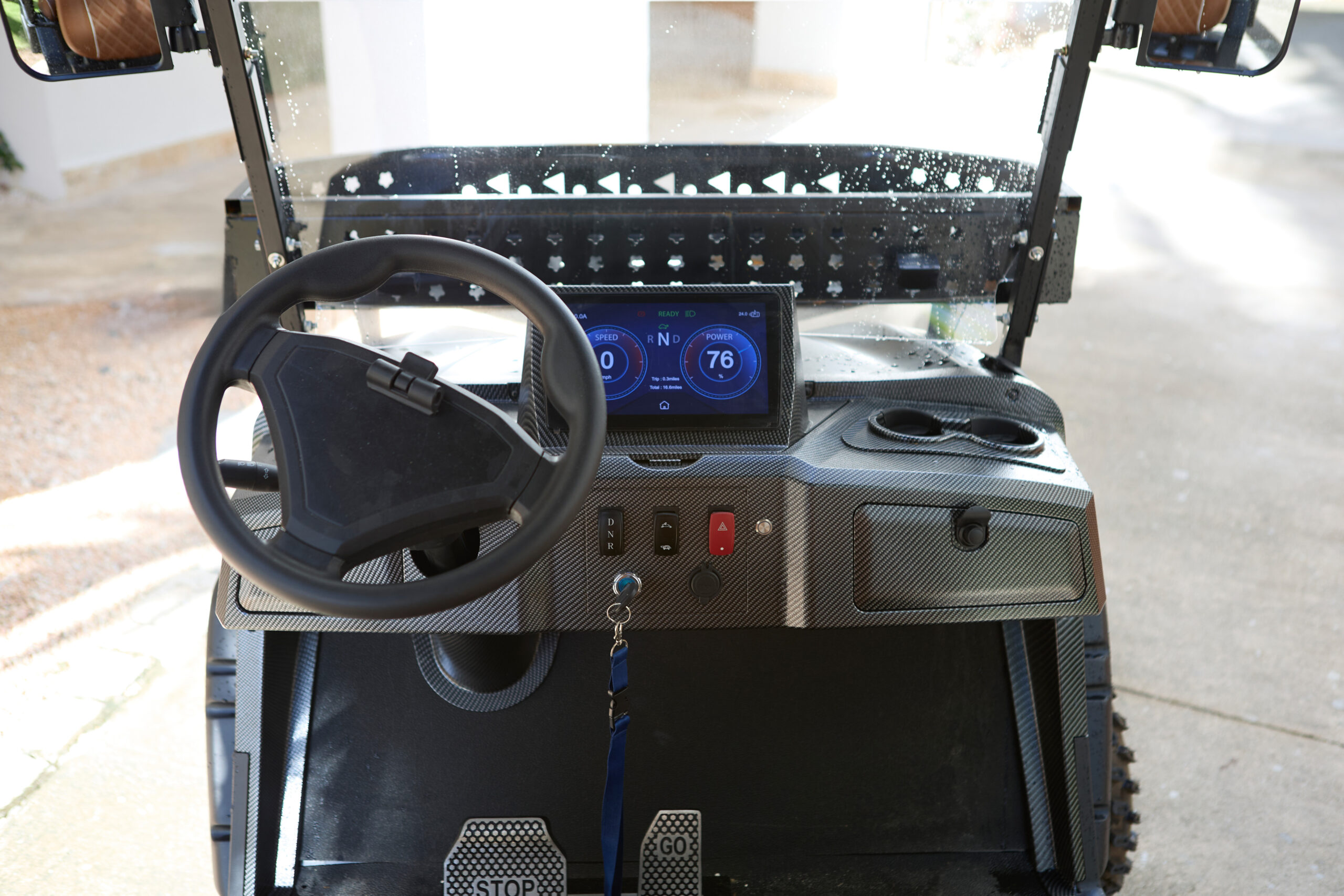 Con una velocidad máxima de 40 km/h y un alcance de 80 a 100 km por carga, el KY2+2 está listo para recorrer distancias más allá del campo de golf. Equipado con un motor AC de 48V 5000W, ofrece una conducción silenciosa, eficiente y poderosa.